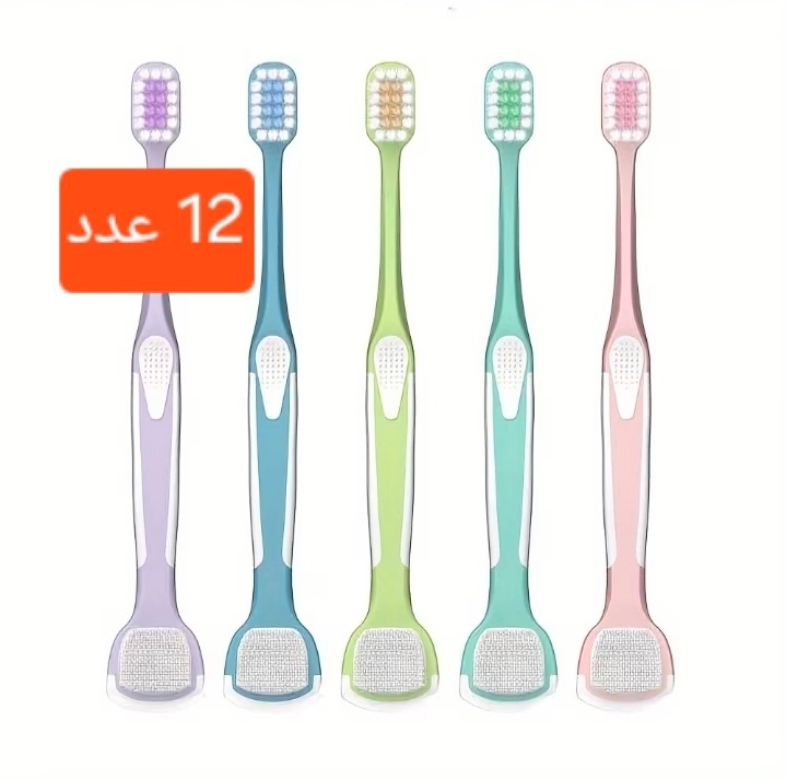 مسواک دو سر دندان و زبان شور در ۵ رنگ مختلف (بسته12عددی)