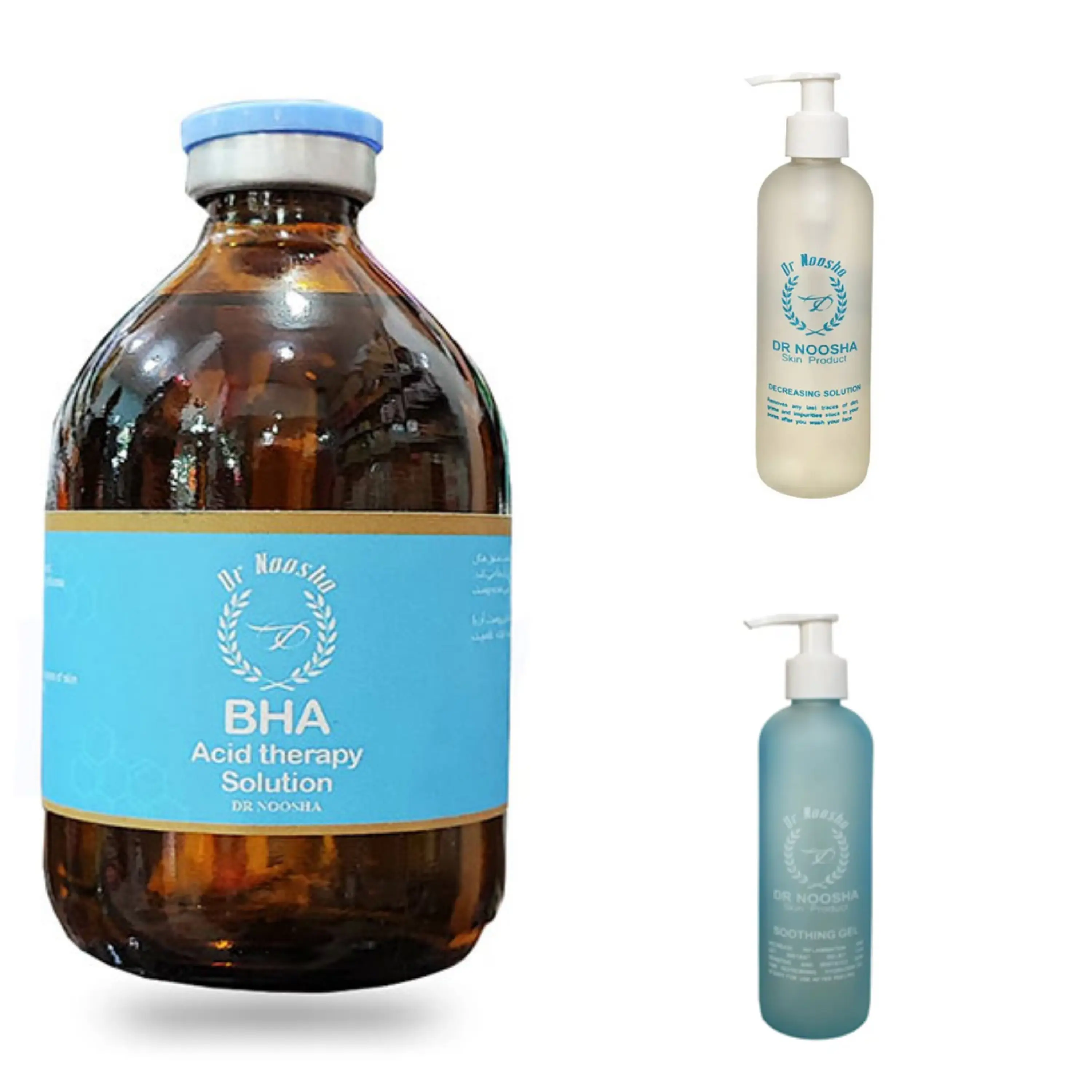 ناموجودمحلول اسیدتراپی ب اچ آ (BHA) دکترنوشا حجم 100 میل ، محلول قبل از اسید تراپی ، ژل بعد از اسید تراپی و رقیق کننده