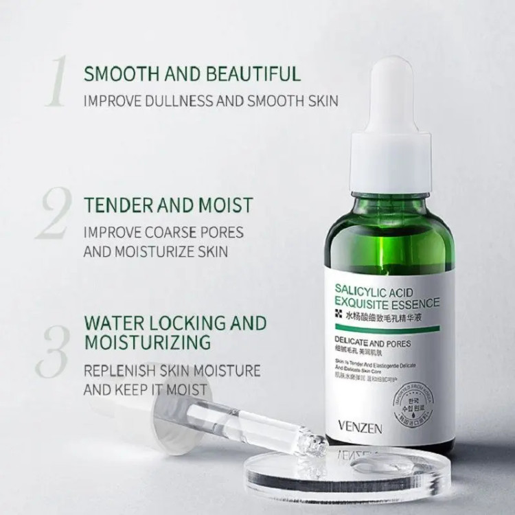 چرا سرم سالیسیلیک اسید را انتخاب کنیم؟ سالیسیلیک اسید ویز فواید زیادی برای پوست شما دارد. در اینجا چند دلیل اصلی وجود دارد که چرا باید آن را در برنامه مراقبت از پوست خود بگنجانید: 1. قدرت مبارزه با آکنه سالیسیلیک اسید Veze به دلیل توانایی آن در مبارزه با آکنه بسیار مورد توجه است. به عمق منافذ نفوذ می کند و به طور موثر چربی و سلول های مرده پوست را که می توانند آنها را مسدود کنند، حل می کند. با این کار به جلوگیری از ایجاد آکنه کمک می کند و ظاهر لک های موجود را کاهش می دهد. 2. لایه برداری و نوسازی پوست لایه برداری یک مرحله ضروری در هر رژیم مراقبت از پوست است و سالیسیلیک اسید ویز یک لایه بردار فوق العاده است. به از بین بردن سلول های مرده پوست، باز کردن منافذ پوست و بهبود گردش سلولی کمک می کند. این فرآیند پوستی شاداب و درخشان را نشان می دهد و به محو شدن اسکارهای آکنه و هایپرپیگمانتاسیون کمک می کند. 3. درمان بیماری های پوستی سالیسیلیک اسید Veze نه تنها در برابر آکنه موثر است بلکه برای چندین بیماری پوستی دیگر نیز تسکین می دهد. این می تواند به کاهش قرمزی و التهاب مرتبط با بیماری هایی مانند پسوریازیس، درماتیت سبورئیک و کراتوز پیلاریس کمک کند و پوستی سالم تر را برای شما به ارمغان می آورد.