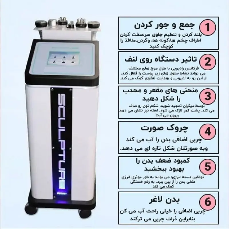رفع افتادگی پوست در نواحی فک ، زیر چانه ، گردن و غبغب ، پوست شل و افتادگی بدن را سفت و محکم می کند. از بین بردن جای جوش و اسکارهای آکنه سلولیت: ترمیم گلوله شدگی های پوست، ترمیم سلولیت چشم: خطوط ظریف اطراف چشم و نواحی تیره رنگ زیر چشم را از بین می برد. کاهش چربی: صورت و بدن، کاهش وزن به طور موثری پوست پرتقالی را در باسن، ران و صورت را از بین می برد پوست شکم و بدن را که بعد از زایمان یا روش یا لیپوساکشن دچار افتادگی می شود را لیفت می کند. جوان سازی پوست، تحریک بازسازی کلاژ، پوست را سفت می نماید. از بین بردن جای جوش ، اسکارهای آکنه و … متابولیسم بدن را افزایش و تقویت می کند بهبود گردش خون و ترمیم مشکلات لنفاوی 6.ماساژ گرم امواج رادیو تراپی برد کوتاه تحریک لایه های میانی پوست ترمیم آسیب های پوستی ناشی از سوختگی و یا عمل جراحی ترمیم ترک های پوستی ناشی از افزایش وزن به خصوص ترک های پوستی دوران بارداری حذف و کاهش چشم گیر چروک ها اطراف چشم