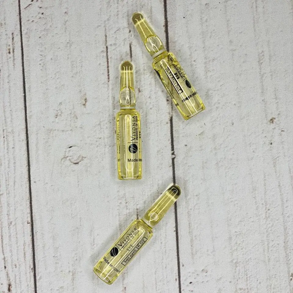 رفع گودی زیر چشم کاهش تیرگی زیر چشم برطرف نمودن چین و چروک ها و خطوط دور چشم حاوی عصاره پیله ابریشم عصاره دارد بانوان و آقایان ویال زیر چشم ویال میکرونیدلینگ ویونسا، جزء ویال هایی است که برای رفع خطوط و چروک اطراف چشم نیز کاربرد دارد. با افزایش سن، چین و چروک پوست صورت و پوست اطراف چشم بیشتر می شود. بروز چروک ها ناشی از کمبود مواد مغذی و محرک درون پوست هستند. اما آمپول های زیر چشم، با دارا بودن مواد مغذی به رفع آنها کمک میکنند. همچنین این نوع محصولات به مرور زمان، حالت افتاده چشم را برطرف می کنند و موجب جوانسازی پوست اطراف چشم می شوند. افرادی که می خواهند سیاهی دور چشم را در مدت زمان کوتاه برطرف کنند، میتوانند از این نوع آمپول ها استفاده کنند. این محصولات هیچگونه آلرژی پوستی و حساسیتی برای افراد ایجاد نمی کنند. به همین دلیل تمامی اشخاص با حساسیت های پوستی زیاد نیز می توانند از ویال زیر چشم استفاده کنند. برای استفاده از این آومپل، حتماً پوست اطراف و زیر چشم را کاملا تمیز نمایید. سپس چند قطره از این آمپول را بر روی پوست خود ریخته و با دست ماساژ دهید تا کاملا جذب پوست شود