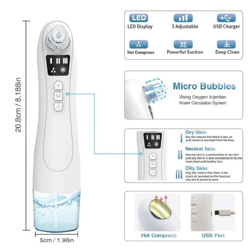 دیدن محصولات مرتبطبررسی اجمالی محصول میکرودرم مخزن دار _ پاکسازی عمق منافذهای پوست دارای اسکوم گرم دارای 3 سطح قدرت با مکش قدرتمند دارای 4 سری حذف چربی های انباشته شده پوست آبرسانی پوست های خشک لیفت پوست های افتاده و شل حذف چربی های انباشته شده حذف جوش های سر سیاه حذف لکه و پاکسازی منافذهای باز صورت آبرسانی پوست های خشک تمیز کننده منافذ صورت چند توصیه برای استفاده درست از دستگاه میکرودرم اسکوم دار بلک هد قبل از استفاده از مواد پاک کننده آرایش برای تمیز کردن بقایای آرایش و لکه های صورت استفاده نمایید. قبل از استفاده کمپرس گرم را به مدت 3-5 دقیقه روی بینی قرار دهید تا جوش های سرسیاه عمیق خارج شود. محصولات مراقبت از پوست را بعد از پاکسازی استفاده کنید.