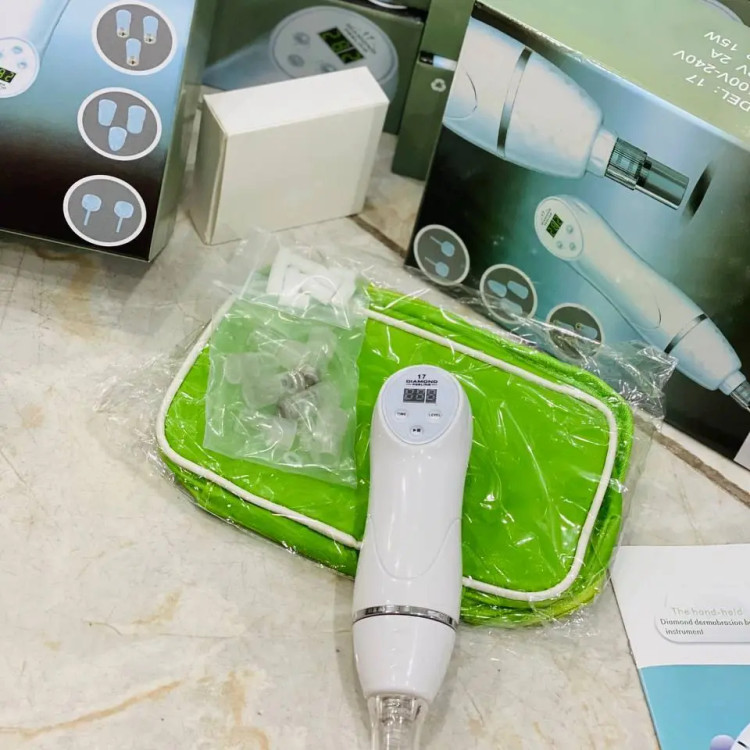 کوچک، سبک، امکان حمل آسان، وزن دستگاه فقط 160 گرم است • سه درجه مختلف از ضخامت سر الماسه • سر الماسه با ضخامت کم، متوسط و زیاد • سه سر مکش مختلف • فیلتر دوگانه، دستگاه دارای دو فیلتر است موارد استفاده و فواید میکرودرم چیست؟ 1- از بین بردن لک های پیری 2- از بین بردن و تمیز کردن جوشهای سر سیاه 3-شاداب وسر حال شدن پوست صورت 4- ضخیم و سفت تر شدن پوست و بدلیل کلاژن سازی 5- روشن تر شدن پوست 6- میکرودرم موجب نفوذ عمیق تر وتاثیر بهتر داروها شده واثر داروها را تا 10برابر افزایش میدهد 7- درمان چروکهای ظریف پوستی و کمک به از بین بردن اسکارهای سطحی مثلاً اسکار آکنه 8- افزایش تاثیر داروهای موضعی و کمک موثر در درمان لک های پوستی و تفاوت رنگ در سطح پوست مثل ویتیلیگو 9- کمک به درمان جوش های زیر پوستی 10-در پوست های چرب چربی صورت را کنترل میکند ودر پوستهای خشک موجب تحریک فعالیت غدد می شود و به نرمتر شدن و لطافت پوست کمک میکند 11- در پوست های قرمز وحساس حساسیت پوست را کمتر می کند.