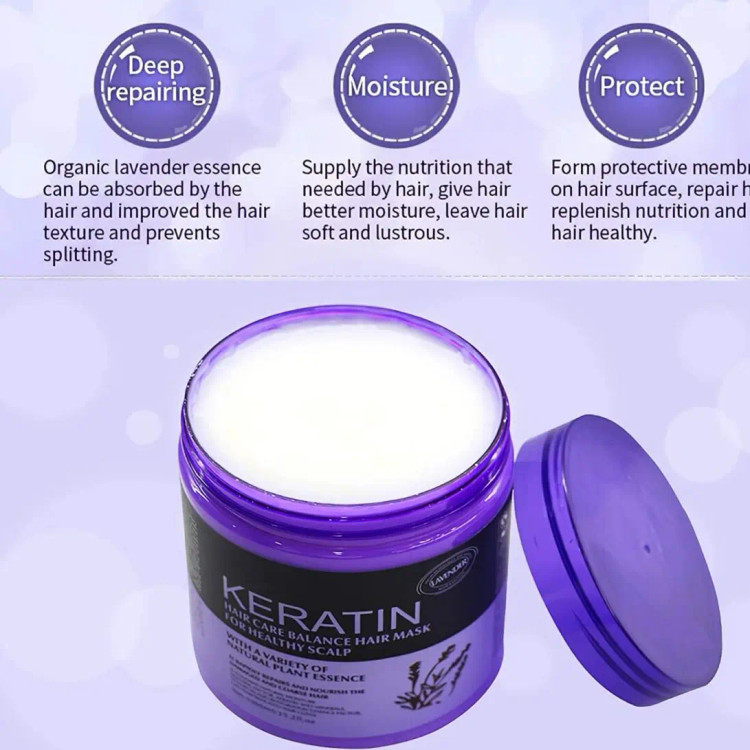 ماسک مو بدون سولفات و کراتینه برزیلی بنفش با عصاره اسطوخودوس حجم 500 میل