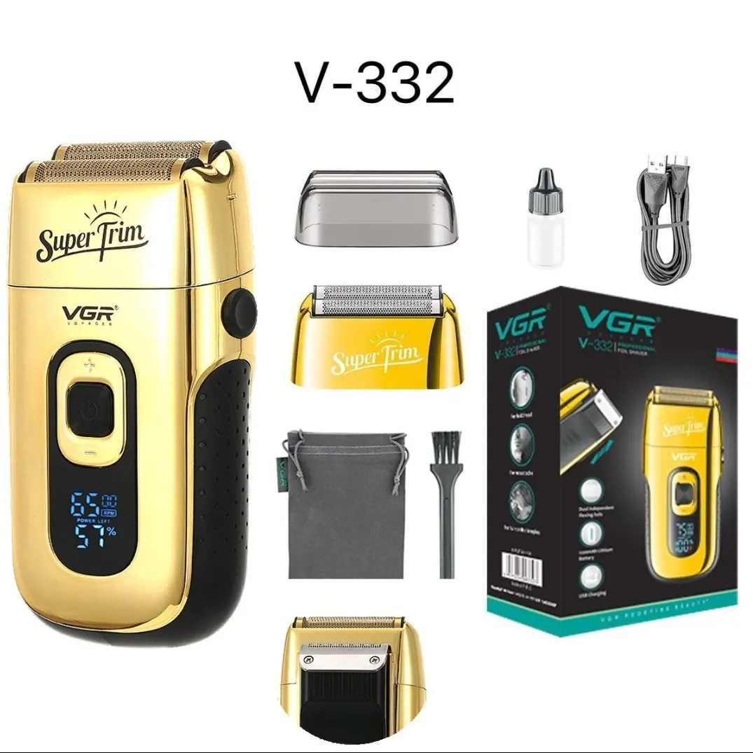 بررسی اجمالی محصول برند VGR مدل 332 بدنه فلزی دارای توری اضافه صفحه دیجیتالی قابلیت تنظیم دور موتور از 6500 تا 7500 مجهز به درگاه شارژ تایپ سی فست دارای کیف مسافرتی باتری 1200 میلی آمپری فول شارژ در 2 ساعت 150 دقیقه آماده به کار کیفیت کار عالی و مخصوص سالن