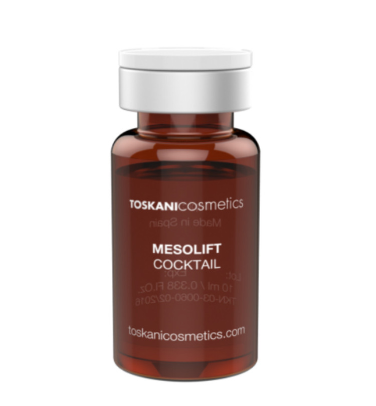 کوکتل مزولیفت توسکانی TOSKANI MESOLIFT، ساخت کشور اسپانیا میباشد حجم این کوکتل ۱۰ میلی لیتر میباشد و به عنوان بهترین کوکتل بعد از میکرونیدلینگ و استفاده از درمارولر در درمان خانگی و کلینیک های مراقبت از پوست قابل استفاده است و دارای خاصیت های چون جوانسازی و لیفت سفت کننده،ضد چین و چروک ،ضد پیری،کلاژن ساز،ایجاد پوستی کشیده و صاف است.