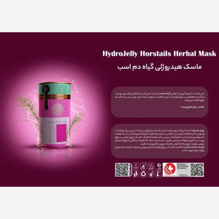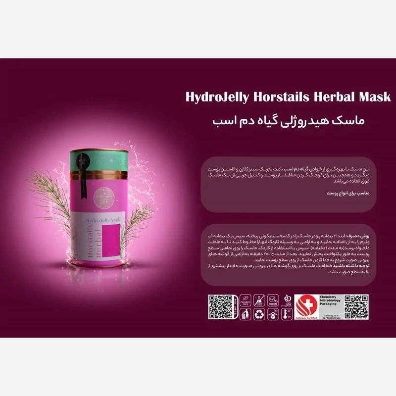 ماسک هیدروژلی جوانساز پوست عصاره گیاه دم اسبی برند هایلایف