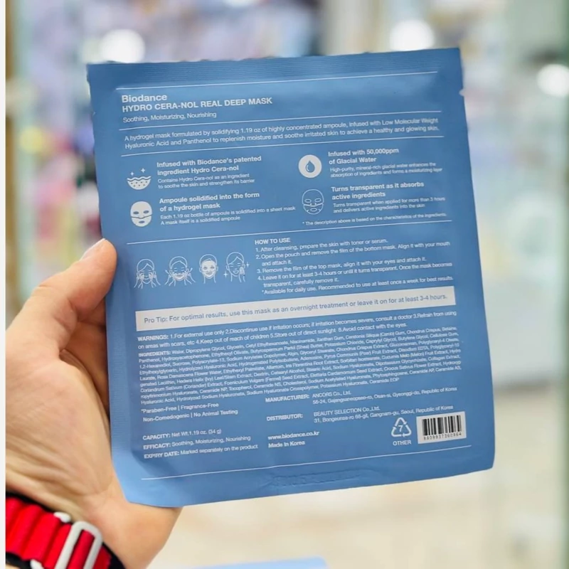 اوجینال (ضمانت اصالت کالا) توضیحات محصول • ماسک ورقه ای hydra cera nol بایودنس اصل • آبرسانی شدید پوست و جلوگیری از کم آبی و ایجاد چروک • تقویت کننده و مرطوب کننده پوست • تسکین دهنده پوست های حساس • مناسب برای انواع پوست بخصوص پوست خشک و حساس • وزن هر ماسک : 34 گرم • موجود به صورت تکی و پک 4 عددی • محصول کره جنوبی • با تضمین اصالت • انقضا 2027