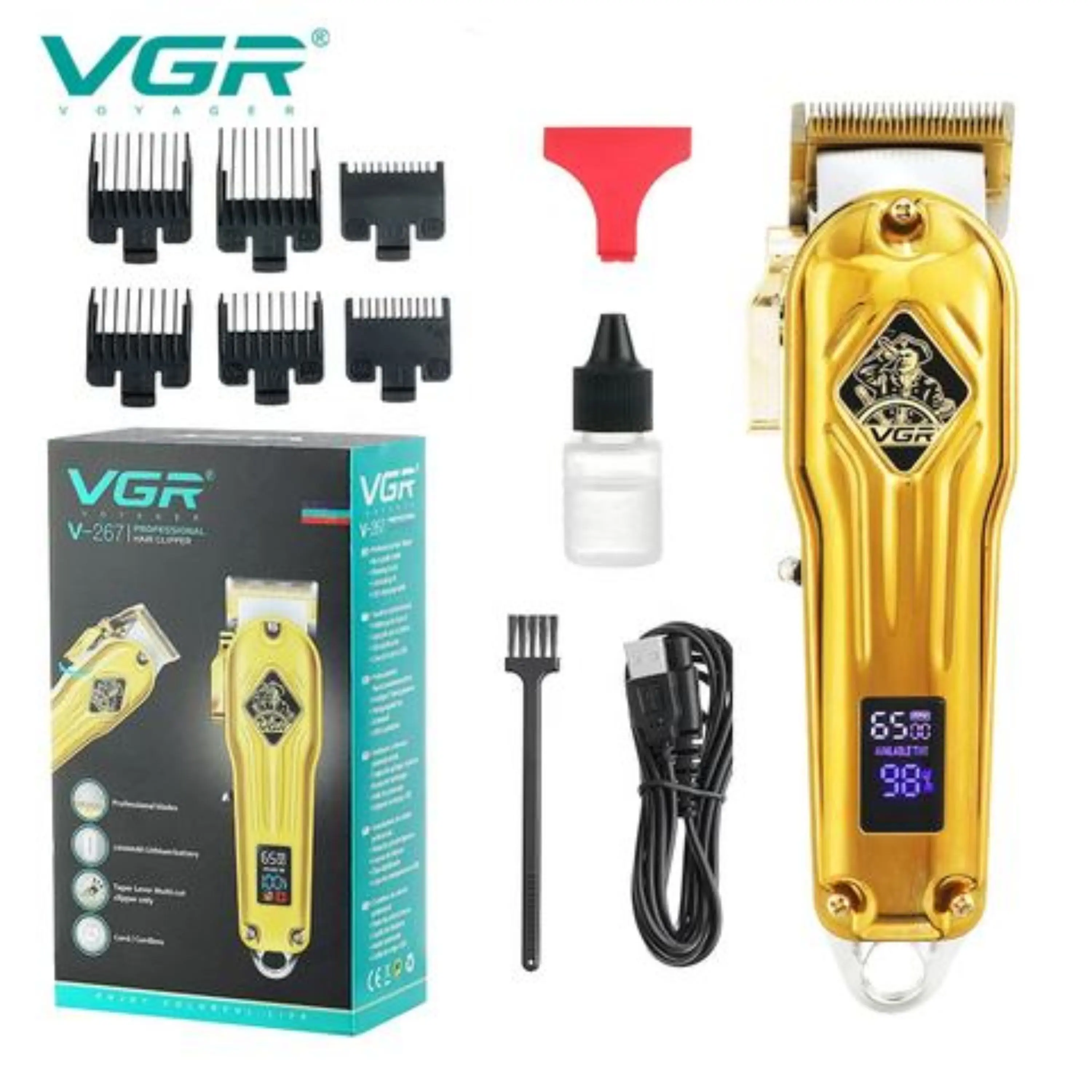 ماشین اصلاح وی جی آر مدل v-267 از محصولات شرکت VGR بوده، که برای اصلاح موی سر و صورت میباشد. جنس تیغههای این محصول از تیتانیوم بوده، که بر روی پوست حساسیتی ایجاد نمیکند. و میتوان با خیال راحت از آن استفاده کرد. ماشین اصلاح VGR V-267 از تکنولوژی برش مستقیم بهره میبرد، که موهای سر و صورت را با مرز بندی مشخص کوتاه میکند.