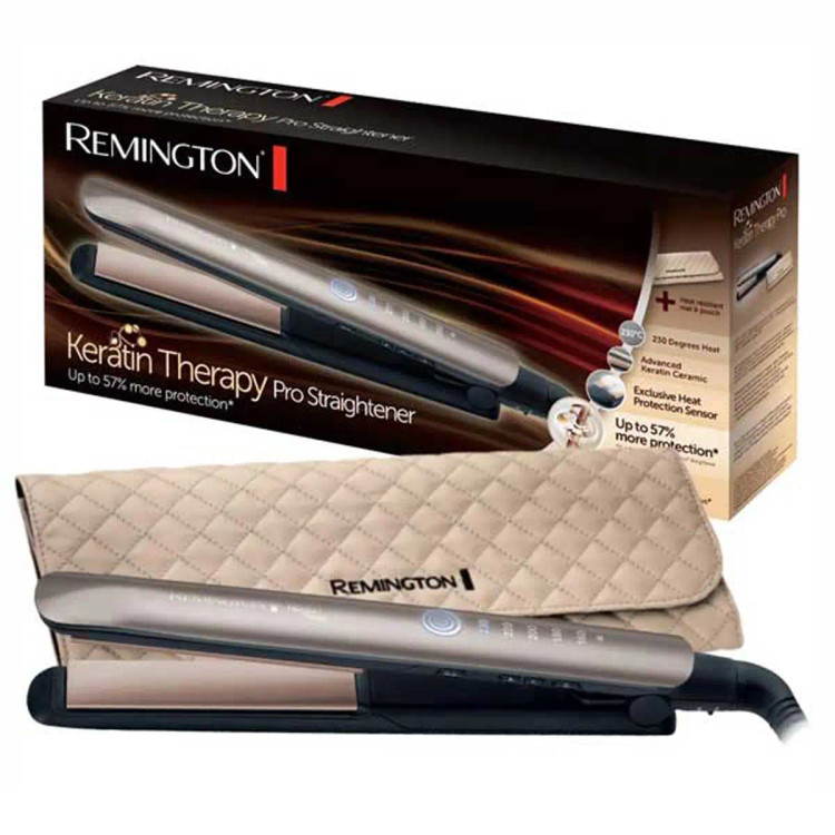 اتو مو رمینگتون دارای حسگر خودکار جهت تنظیم درجه حرارت بر اساس ضخامت ساقه مو تا 57 % حفاظت بیشتر در برابر آسیب دیگی و شکنندگی نمایشگر دیجیتالی یکپارچه، دارای 5 درجه تنظیم از 160 تا 230 درجه سانتی گراد گرم شدن سریع در عرض 15 ثانیه مجهز به صفحاتی متحرک جهت تنظیم فشار وارده به مو در هنگام حالت دادن دارای قفل دما برای جلوگیری از تغییرات احتمالی دما دارای عملکرد تقویت توربو دارای کیف چرمی دارای سیستم ایمنی خاموش کننده خودکار بعد از 60 دقیقه در صورت عدم استفاده از دستگاه دارای ولتاژ جهانی جهت استفاده در هر نقطه ی دنیا