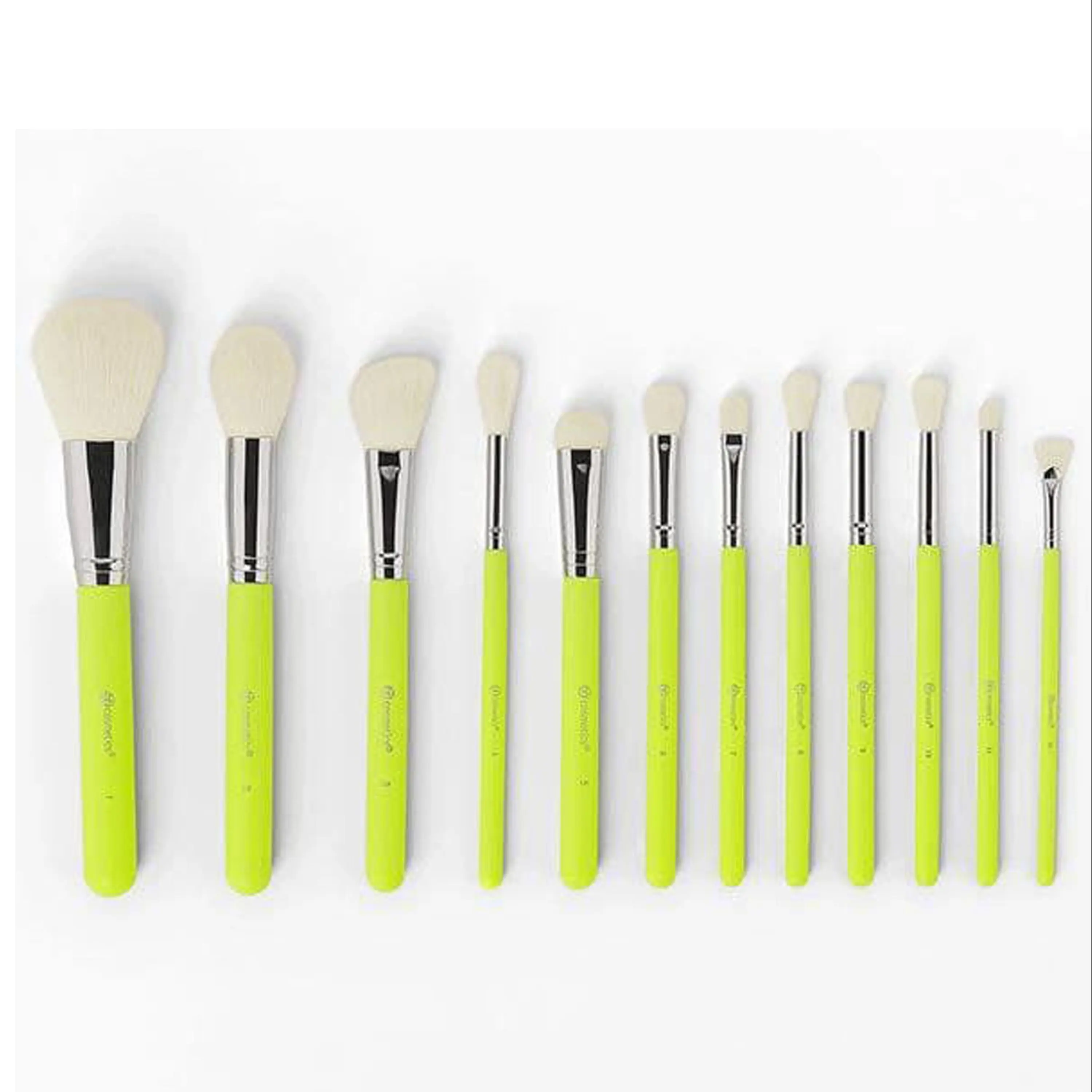 ست براش 12 تایی بدون ریزش کیفیت عالی و با دوام طراحی ارگونومیک قابل شست و شو دارای کرک بسیار نرم و لطیف پر تراکم بسیار کاربردی دسته سبز فسفری دارای استند مناسب برای میکاپ ارتیست های حرفه ای