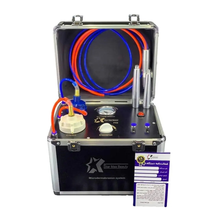 دستگاه می-کرودرم چمدانی استارمکس 85 پاسکال تعبیه شده در درون صندوق با فیلتر جدید که باعث دوام و مصرف بهتر و مکش مناسب میشود. یک سال گارانتی فشار مکش تا 85 کیلو پاکسال دارای 1 کیلو پودر اکسید آلومینیوم درجه 1 دارای فیلتر استاندارد تعبیه شده در درون صندوق با فیلتر جدید دارای سیستم پودری، الماسه و اندرمولوژ دارای 2 هندپیس دائمی پاکسازی و جوان-سازی پوست رفع چین و چروک و خط خنده لیفتینگ و رفع لک و کک و مک رفع جای جوش و غبغب و آکنه رفع خطوط سطحی پوست رفع آسیب های خفیف پوستی درمان پوست چرب دارای چندین سطح قدرت مکندگی پوست دارای موتور کره ای دستگاه 3 کاره بوده و دارای دو عدد هندپیس است. دارای تمام سری های: پودری الماسه اندرمولوژی اقلام همراه 5 عدد سری الماسه دارای دو عدد هندپیس 3 عدد سری اندرمولوژی 3 عدد سری پودری 1 کیلو پودر مییکرودرم 1 عدد فیلتر فیوز یدک