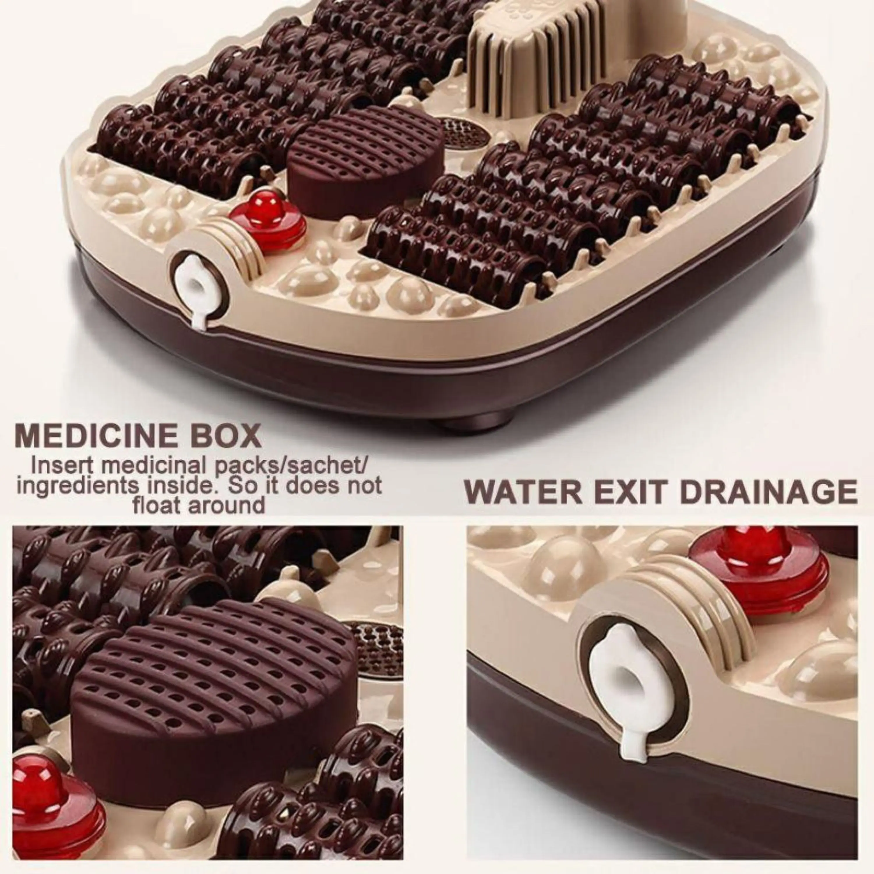 علاوه بر این، طراحی سطح وان دارای غلتکها و توپهای کوچکی است که رگهای پا را ماساژ میدهند و به ما احساس آرامش و شادابی میدهند و بهویژه برای افرادی که سخت کار میکنند و در طول روز روی پاهای خود می ایستند برای استرس و کاهش درد جکوزی و ماساژور پا کمک شایانی می کند.