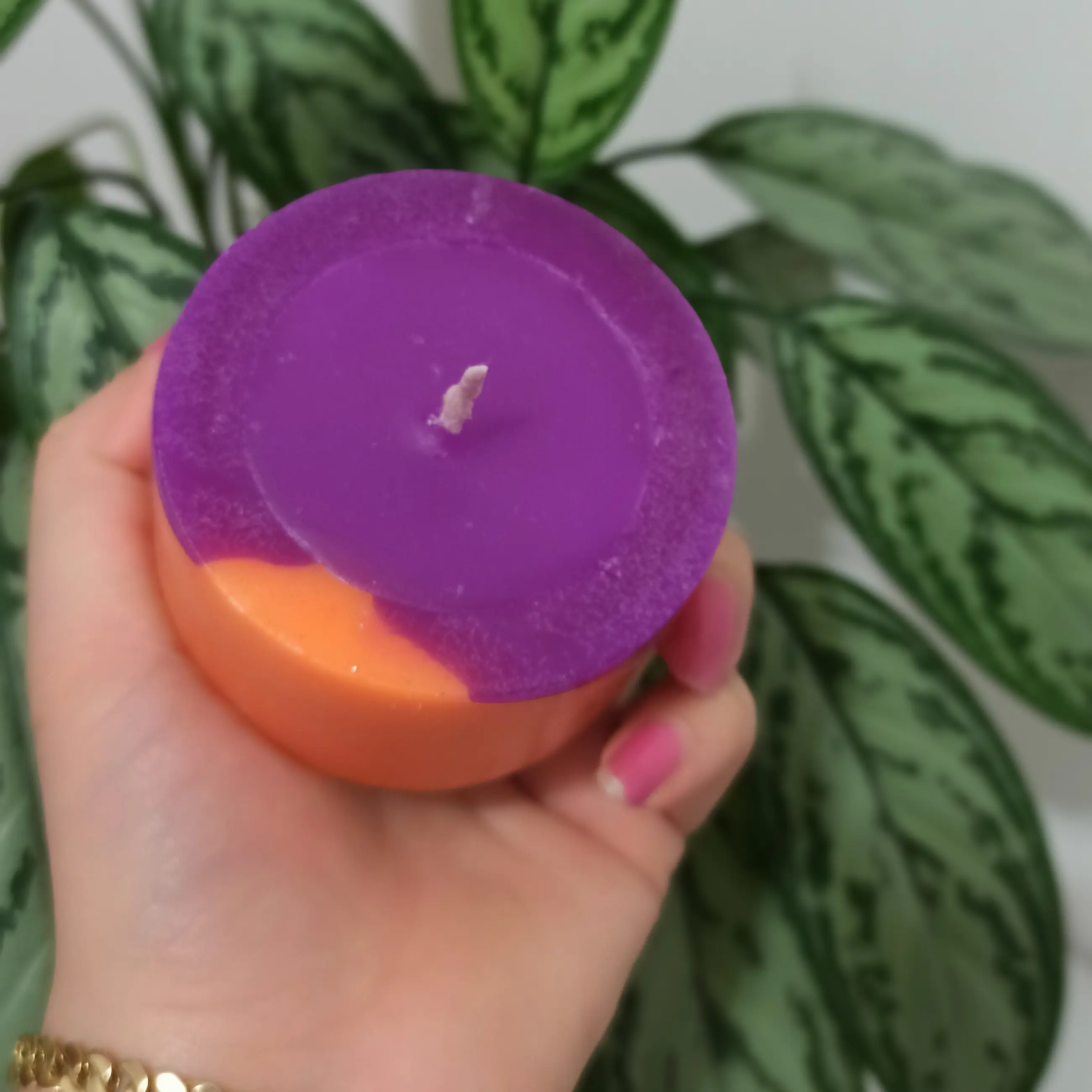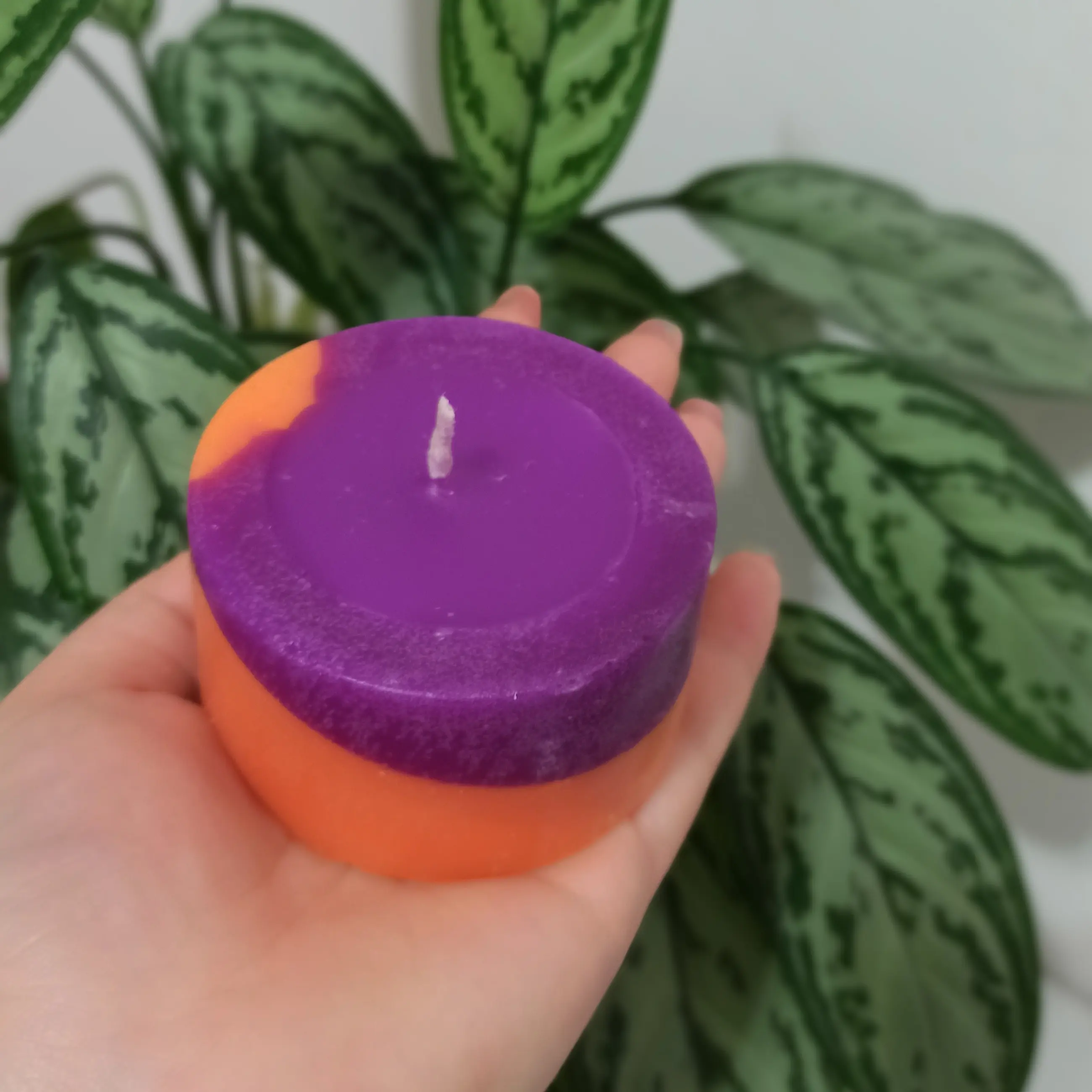 قطر ۵ سانتی متر ارتفاع ۵ سانتی متر تا انتها فیتیله دارد و قابل سوخت است با بهترین مواد رنگ به دلخواه شما قابل تغییر است معطر