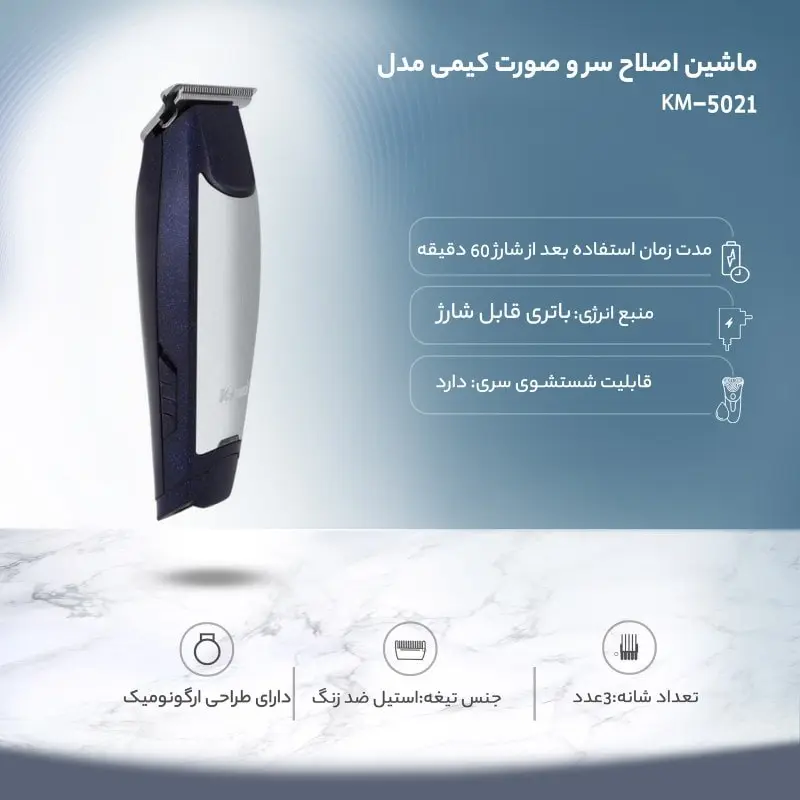 تکنولوژی اصلاح : برش مستقیم اندازه اصلاح : 0٫4 میلی متر اندازه اصلاح با شانه : 1-2-3 میلی متر قابلیت اصلاح با شماره صفر : ندارد منبع تغذیه : برق خانگی(با سیم) – باتری شارژی ( بدون سیم ) قابل شارژ با آداپتور و کابل USB استند شارژ : ندارد مینی تریمر(خط زن سایز 0.4 میلی متر) شارژ کامل 8 ساعت قابل استفاده 60 دقیقه