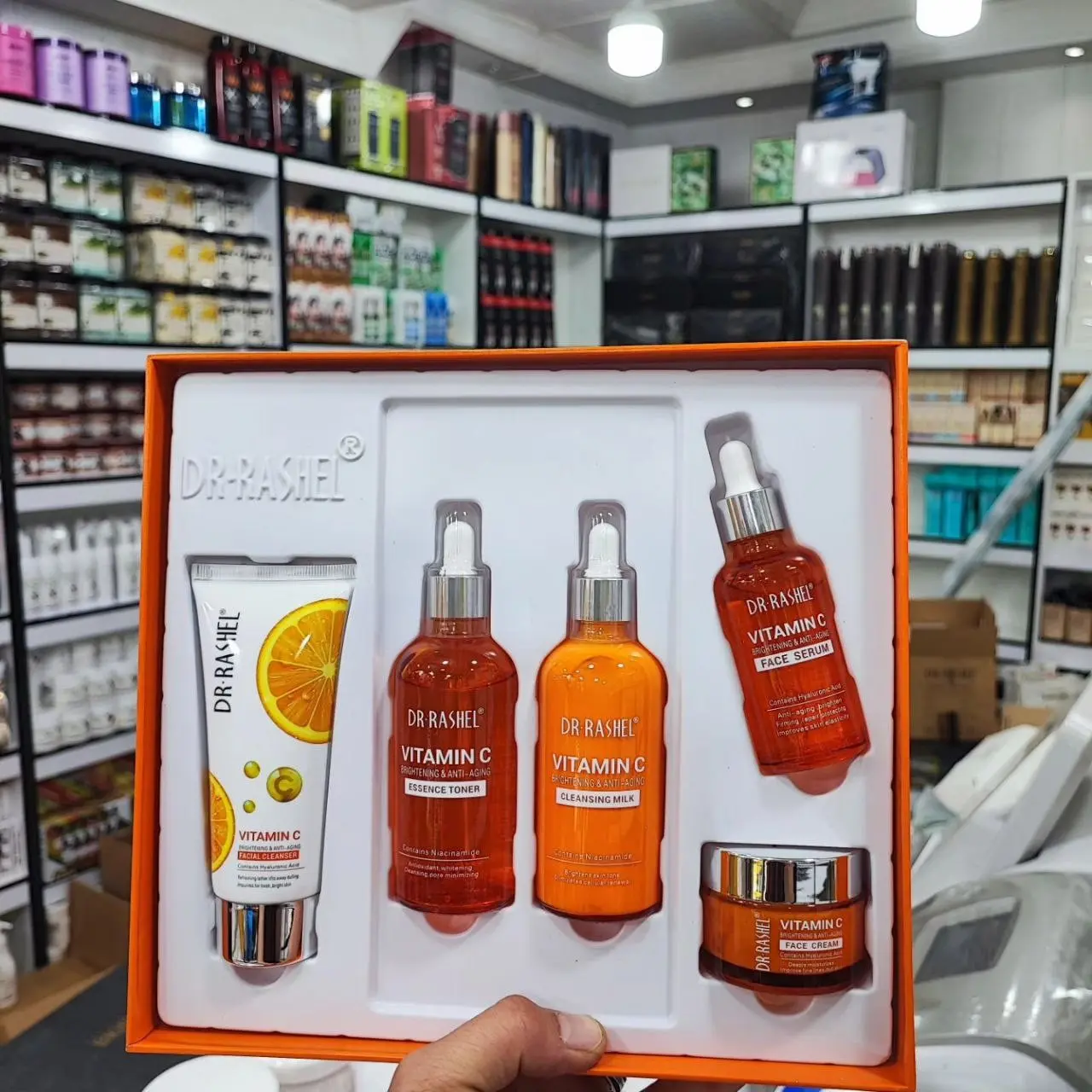 پاک کننده صورت ضد پیری ویتامین C سرم صورت روشن کننده و ضد پیری ویتامین C کرم روشن کننده و جوانسازی ویتامین C تونر روشن کننده و رفع چروک ویتامین C شیر پاک کن ضد پیری ویتامین C تاریخ انقضا 2026 شامل 5 محصول مورد نیاز پوست