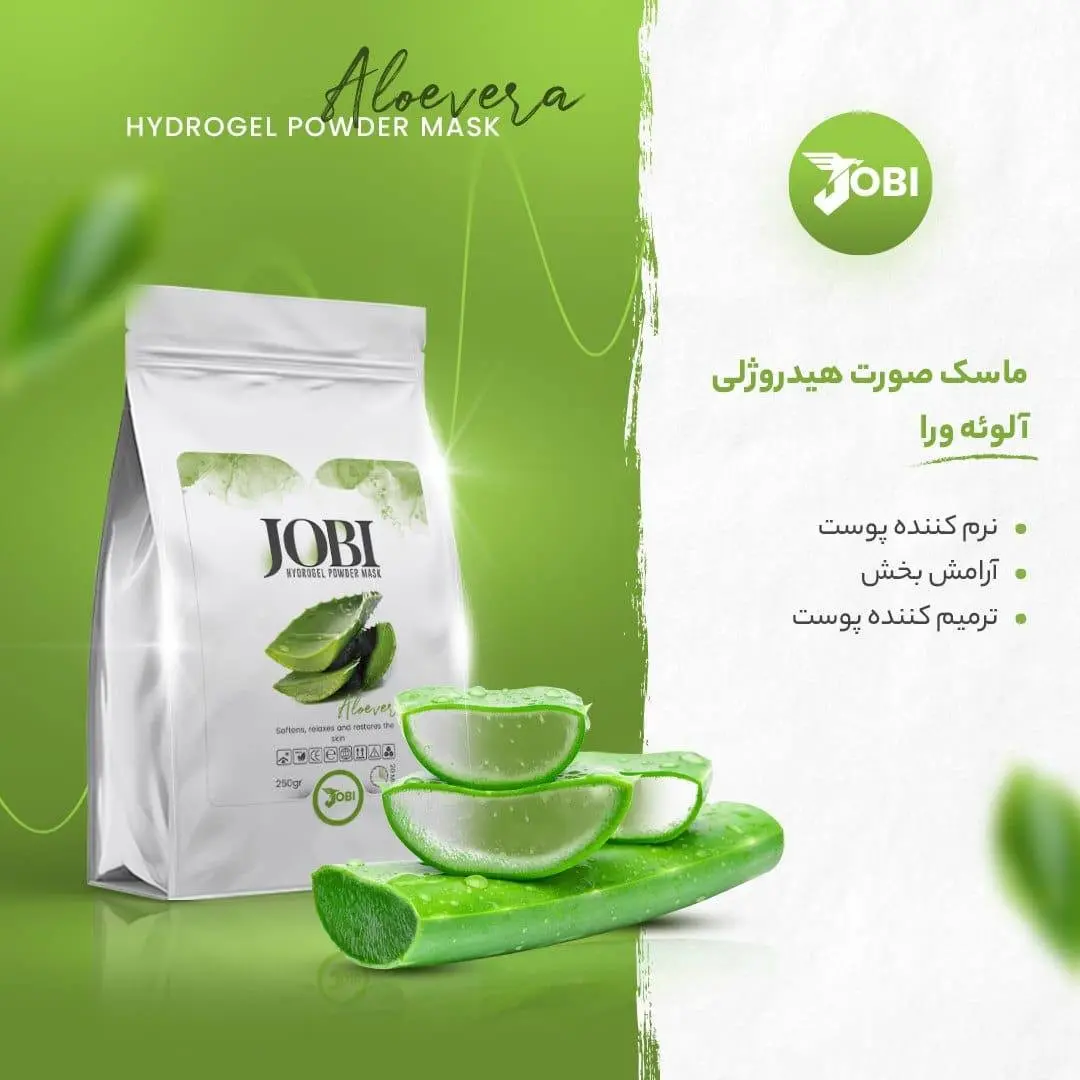 ماسک پودری هیدروژلی آلوئه ورا جوبی JOBI حجم 250 گرم JOBI aloe vera hydrogel powder mask